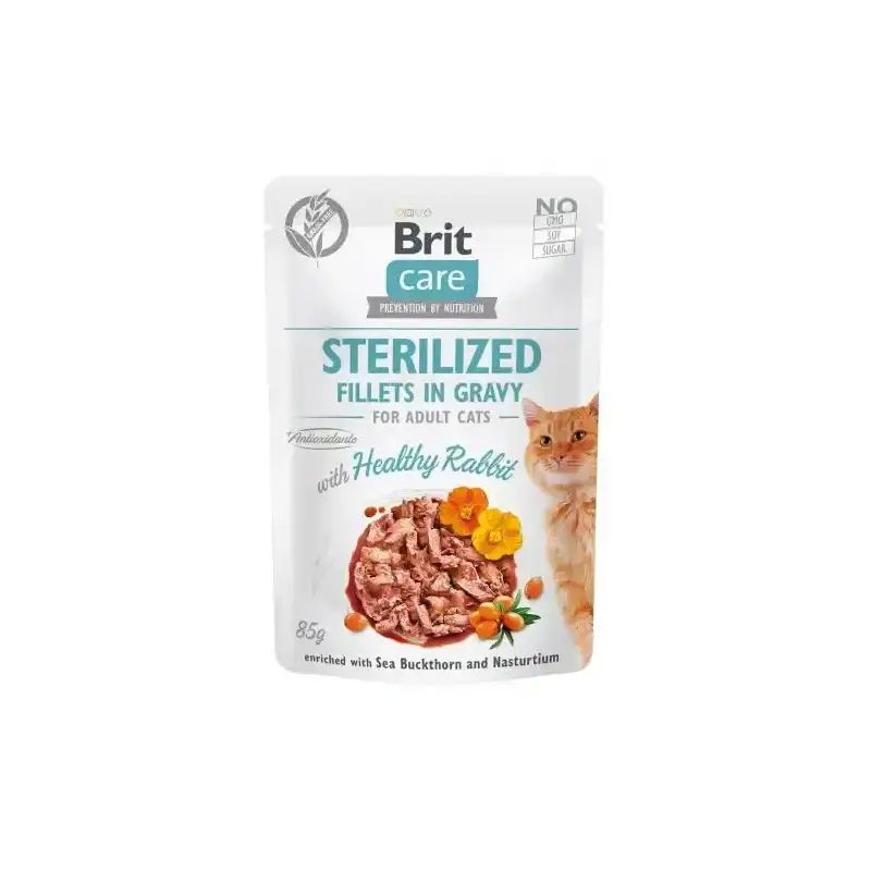 Brit Care Cat Pouches Sterilized Fillets in Gravy with Healthy Rabbit Enriched with Sea Buckthorn and Nasturtium