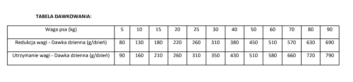 Zalecaną dzienną porcję należy podzielić na 2–3 posiłki. Karmę można podawać suchą lub lekko zwilżoną letnią wodą. Przy zmianie karmy zaleca się stopniowe wprowadzanie przez okres 7 dni. Dzienne zapotrzebowanie może się różnić w zależności od wieku, aktywności i warunków życia psa.