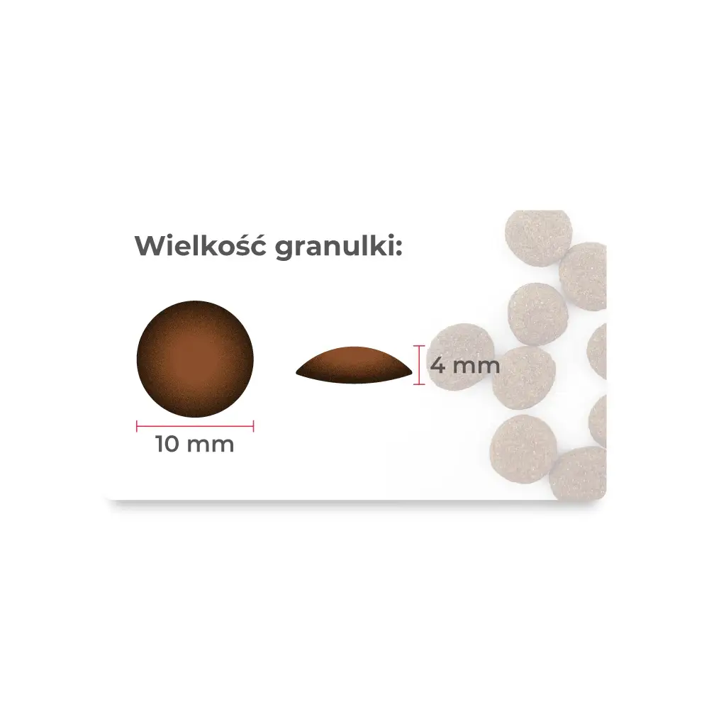 To kompletna karma dla szczeniąt, która łączy wysoką jakość białka zwierzęcego z funkcjonalnymi dodatkami, wspierając zdrowy i harmonijny rozwój młodego psa.