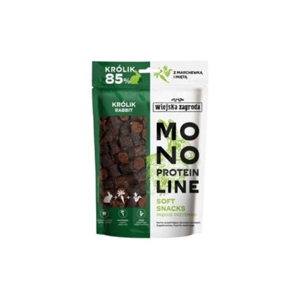 królik 85 %, marchew 10 %, liść mięty 5 %.